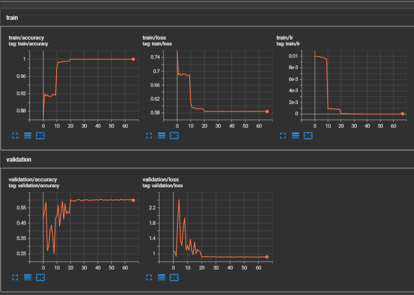 2、从为于雷达中轴线的目标,即目标x坐标为0的数据中,随机抽取10个雷达源文件,生成总计 69,120 帧,结果如下图所示,验证集正确率55%左右。