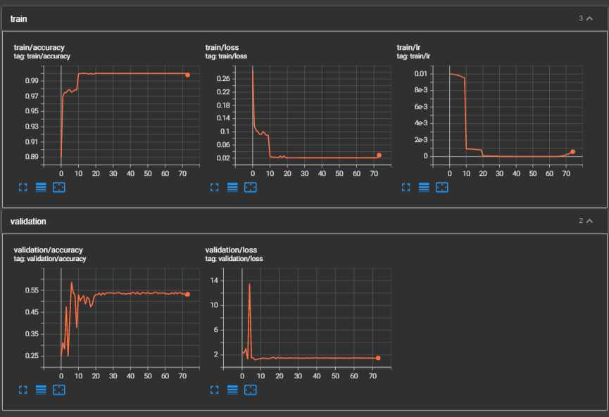 1、每个类别随机抽取20个雷达原始文件,共计4,000帧雷达图像。数据增强后共计 144,000帧。结果如下图所示,开启label smoothing后验证集正确率60%。